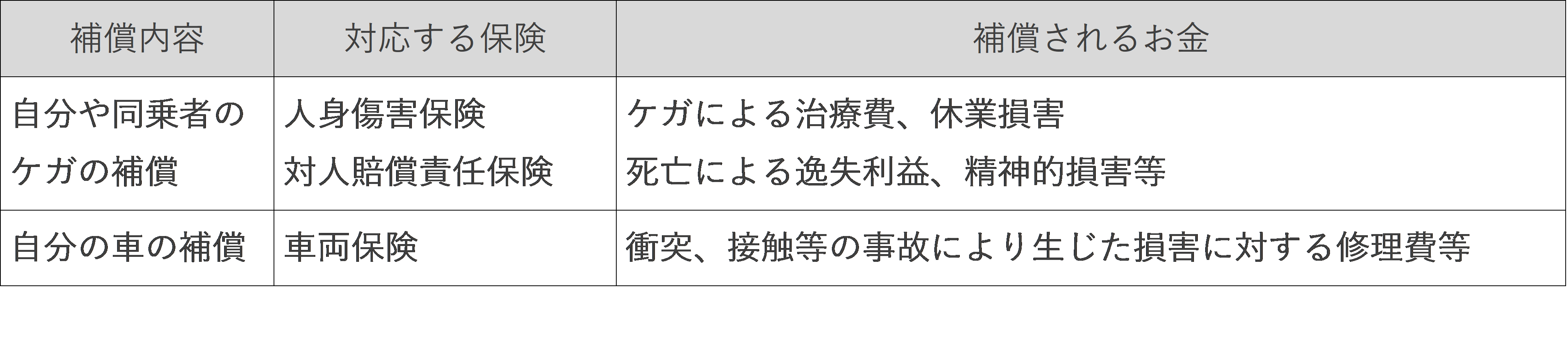 自動車事故で、自分の車が破損した場合や、自分や同乗者がケガをした場合に補償を受けられる保険には、「車両保険」と「人身傷害保険」があります。