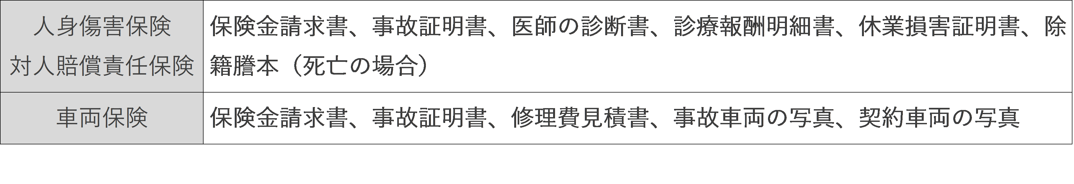 保険会社から経過報告等の連絡があるかもしれませんが、基本的には必要書類をしっかり提出することで保険金を受け取れます。それぞれの保険に必要な書類は、一般的に以下のようなものがあります。