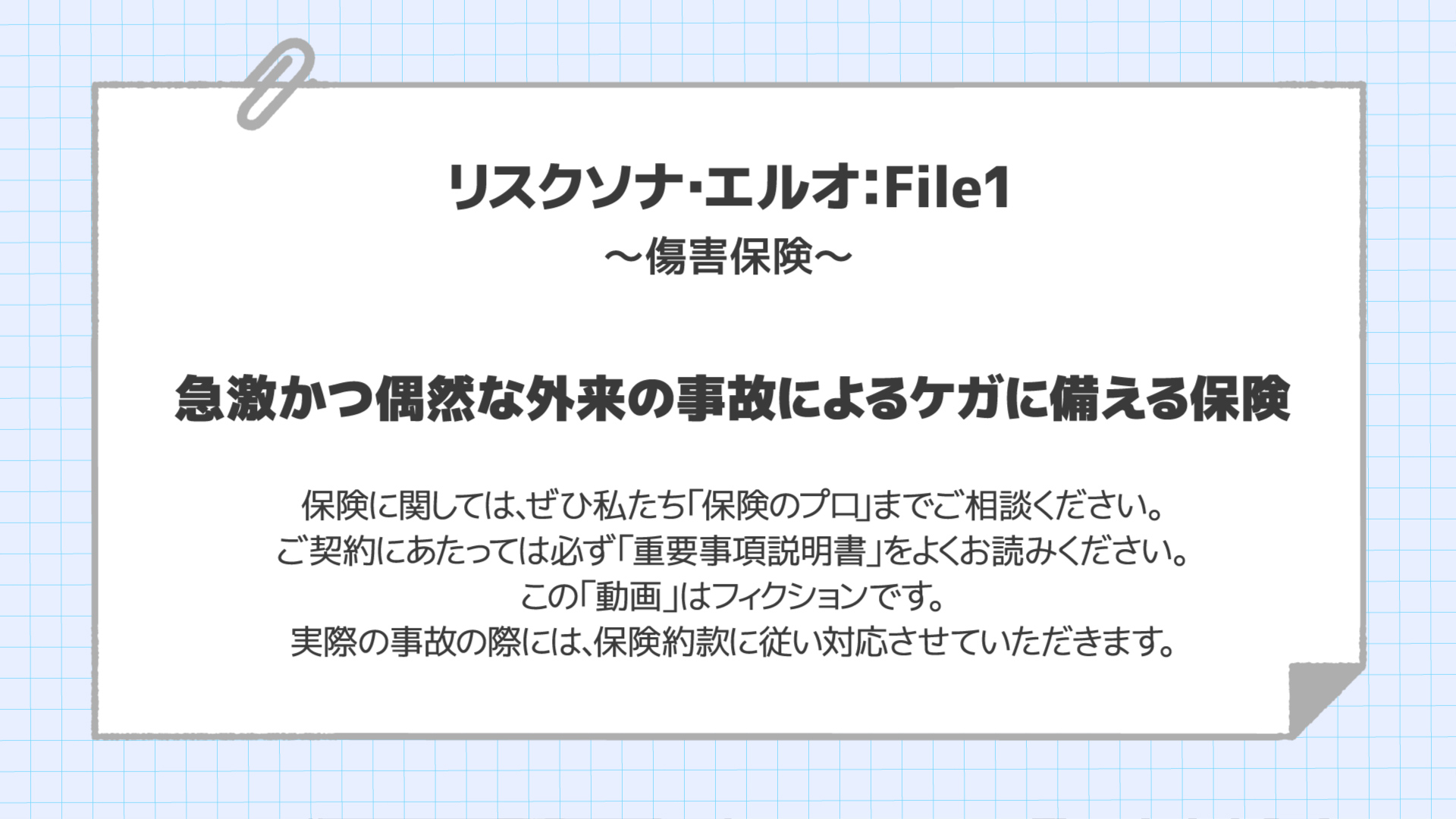 <p>みなさんの周りにもこんな人1人はいないでしょうか?リスクに備えすぎの「リスクソナ・エルオ君」が奇想天外な方法で「ケガ」をしないように備えるも・・・</p>